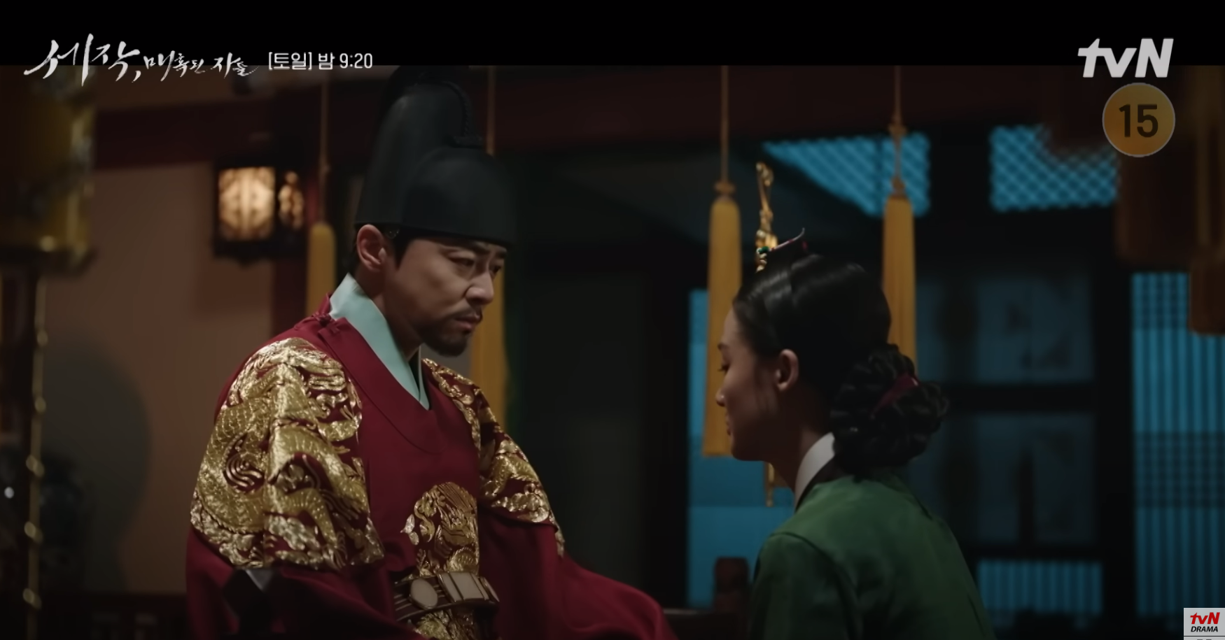 왕대비전으로 간건 본 세자는 임금에게 전합니다. 기대령을 다시보니 아무리 봐도 여인인 것을 어찌 몰랐는지 며느리가 되려고 그랬던것 같다는 왕대비에게 전하의 기대령으로 족하다는 희수입니다.