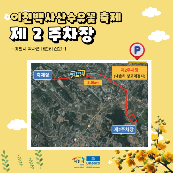 - 주소 : 경기도 이천시 백사면 원적로 775번 길 17 (네비 : 이천 산수유 마을)