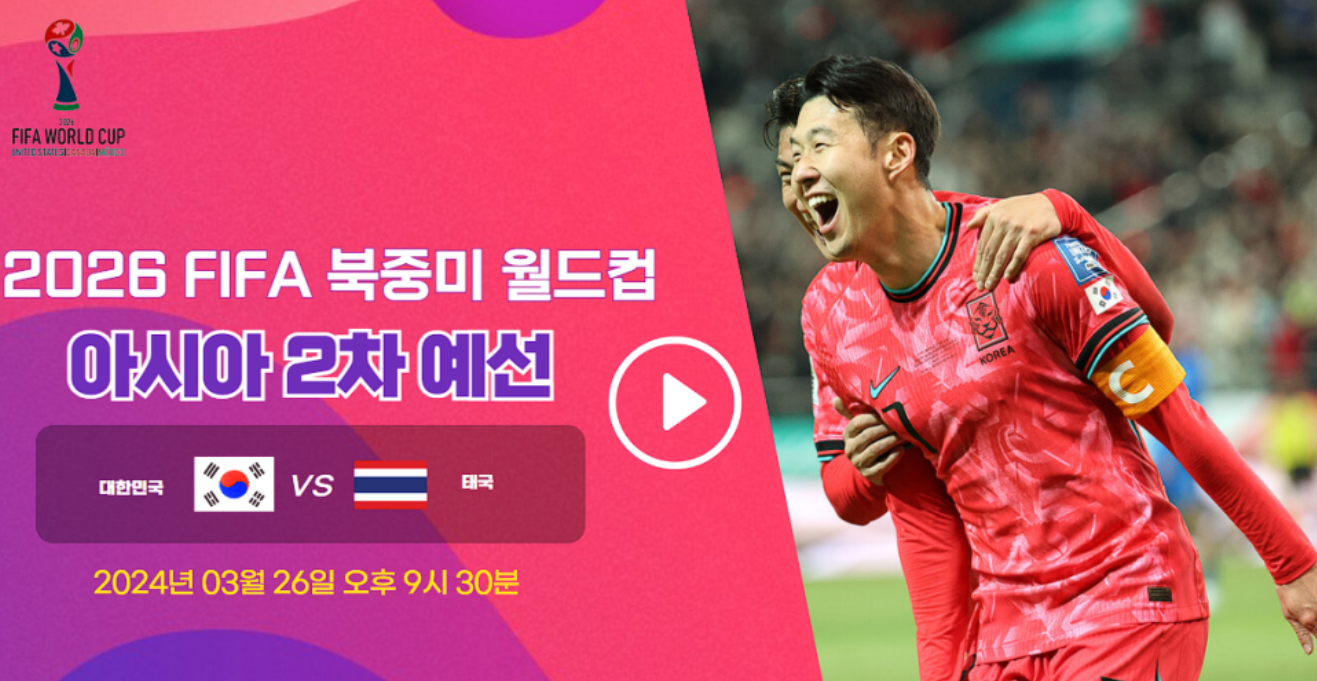 한국 태국 월드컵 축구 2차전 경기 중계 (3월 26일)