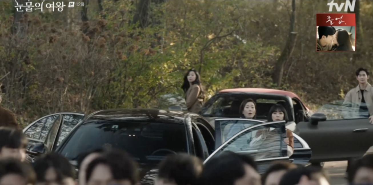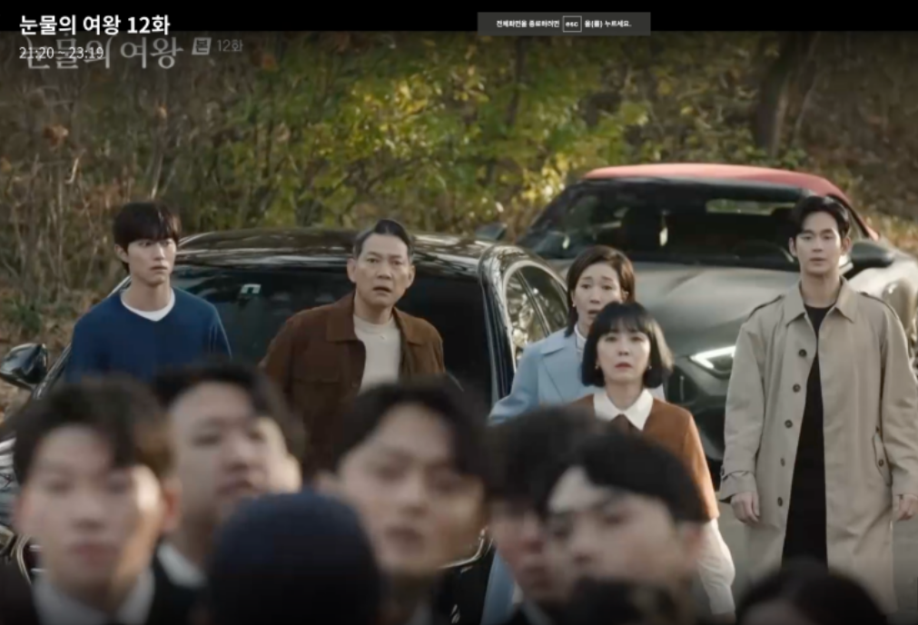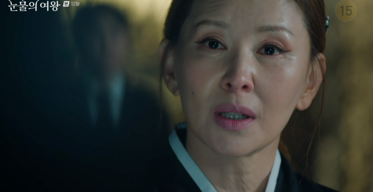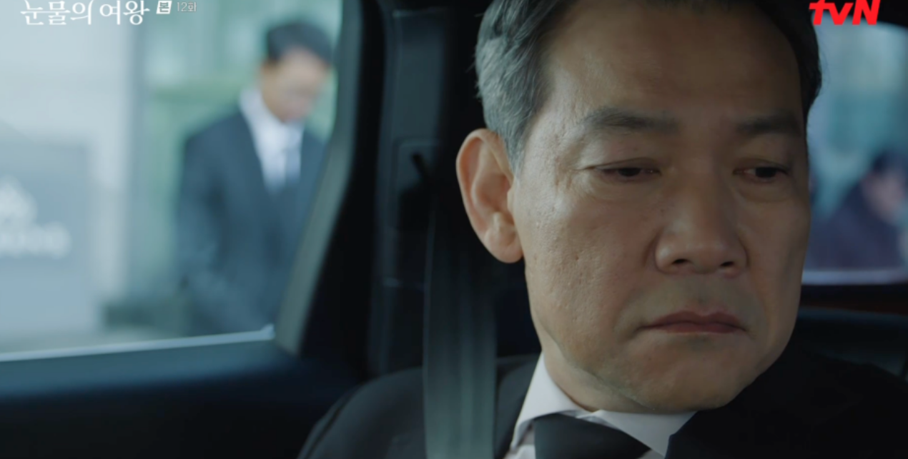 엘리베이터 반대쪽 문이 열리자 무언가를 발견하고 놀란 퀸즈가 의 모습을 보여주며 눈물의 여왕 12회는 끝이 났습니다.