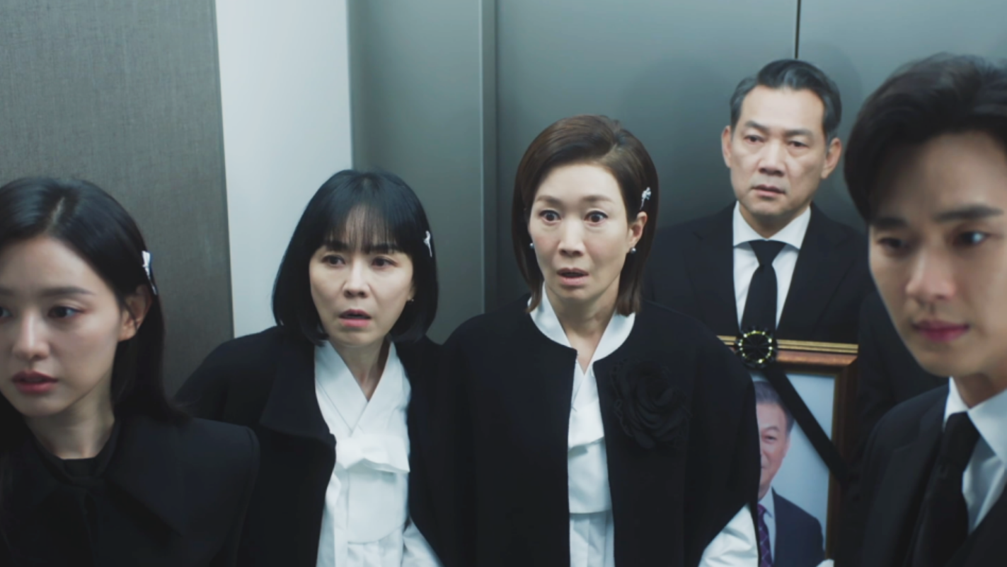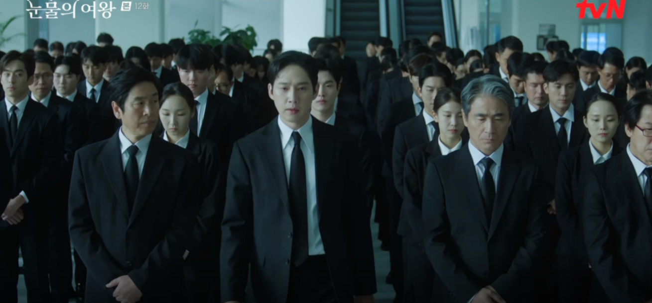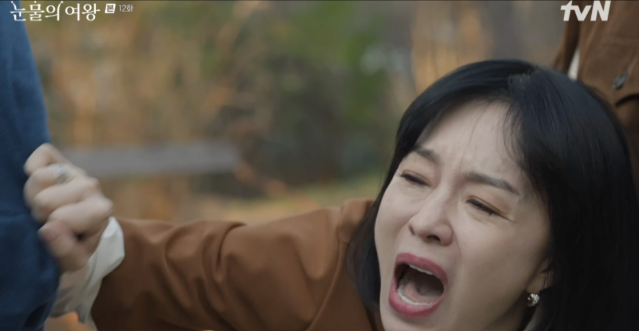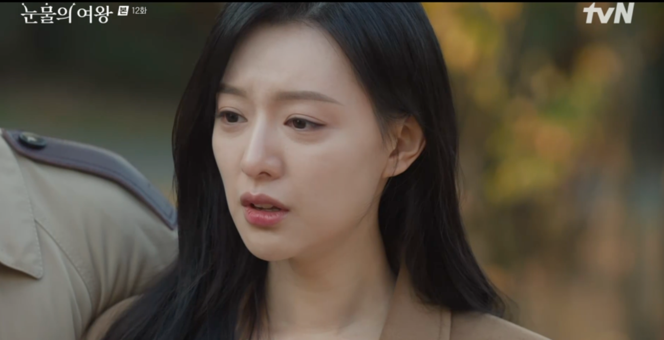 엘리베이터 반대쪽 문이 열리자 무언가를 발견하고 놀란 퀸즈가 의 모습을 보여주며 눈물의 여왕 12회는 끝이 났습니다.
