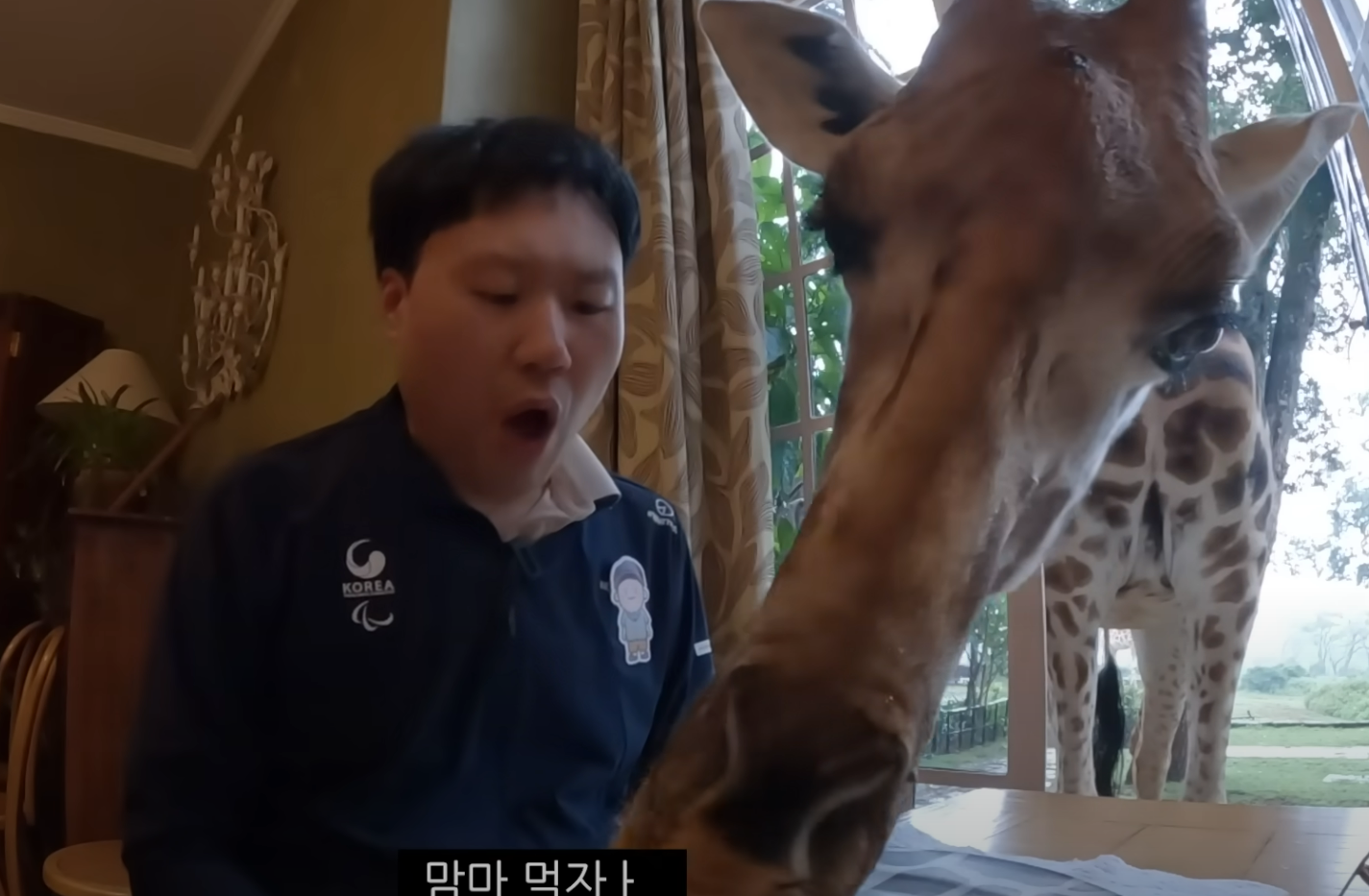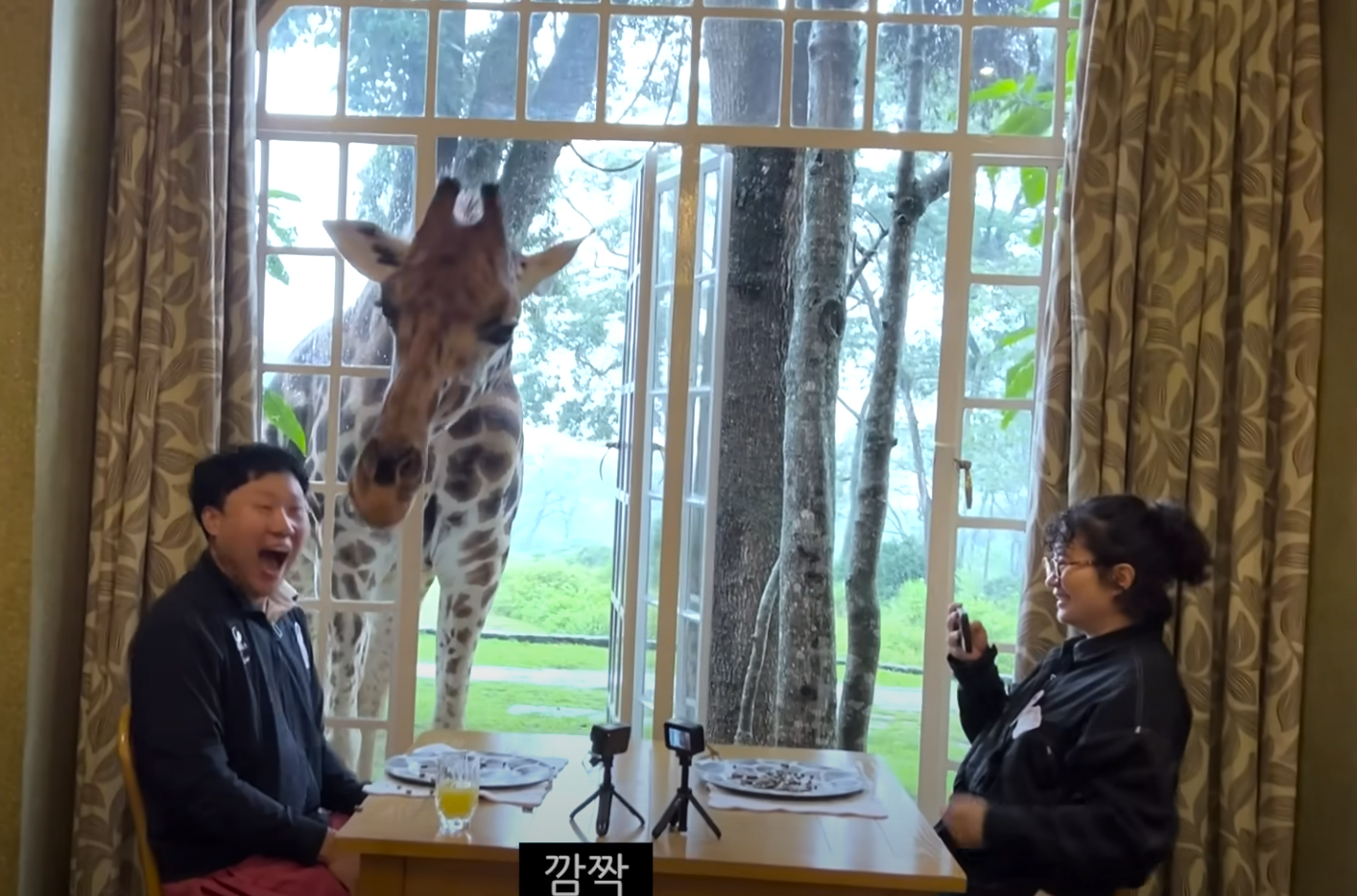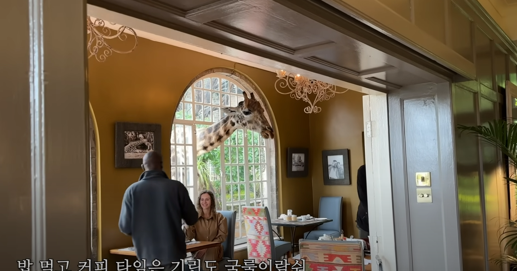 원지와 김용명도 이 창문 앞에서 기린과 함께 아침식사를 즐깁니다~~