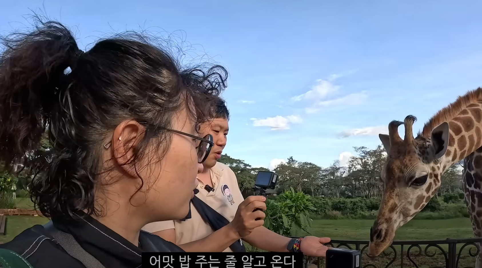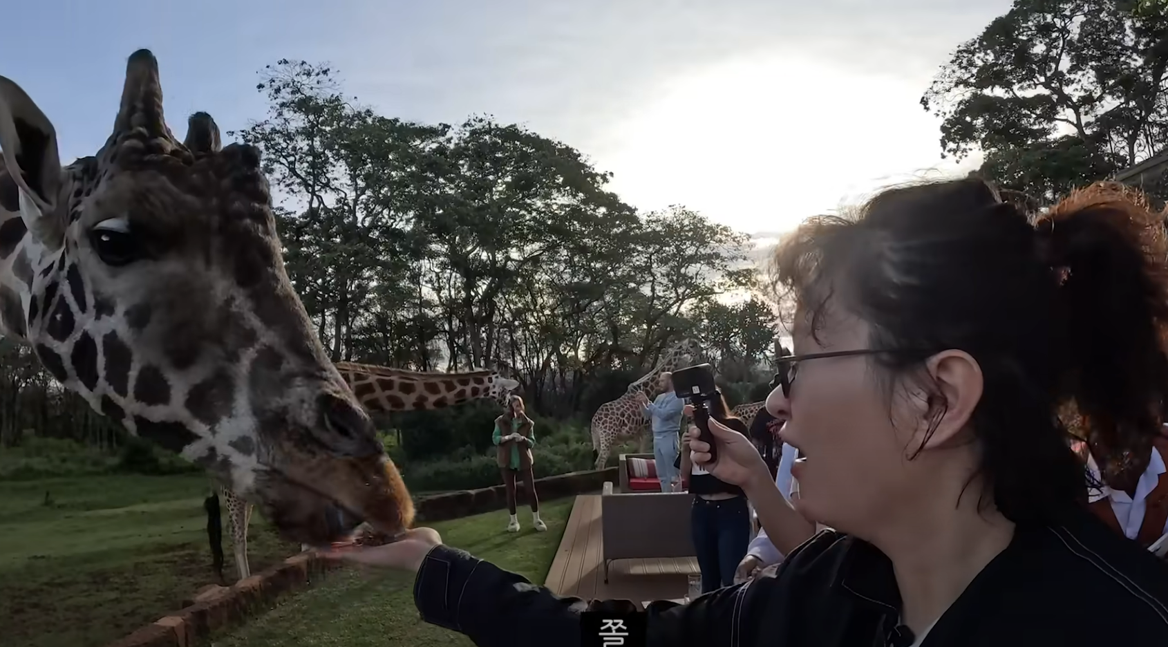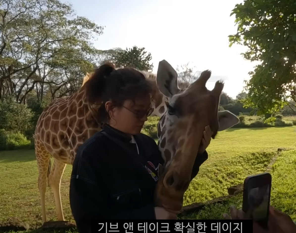 원지와 김용명도 이 창문 앞에서 기린과 함께 아침식사를 즐깁니다~~