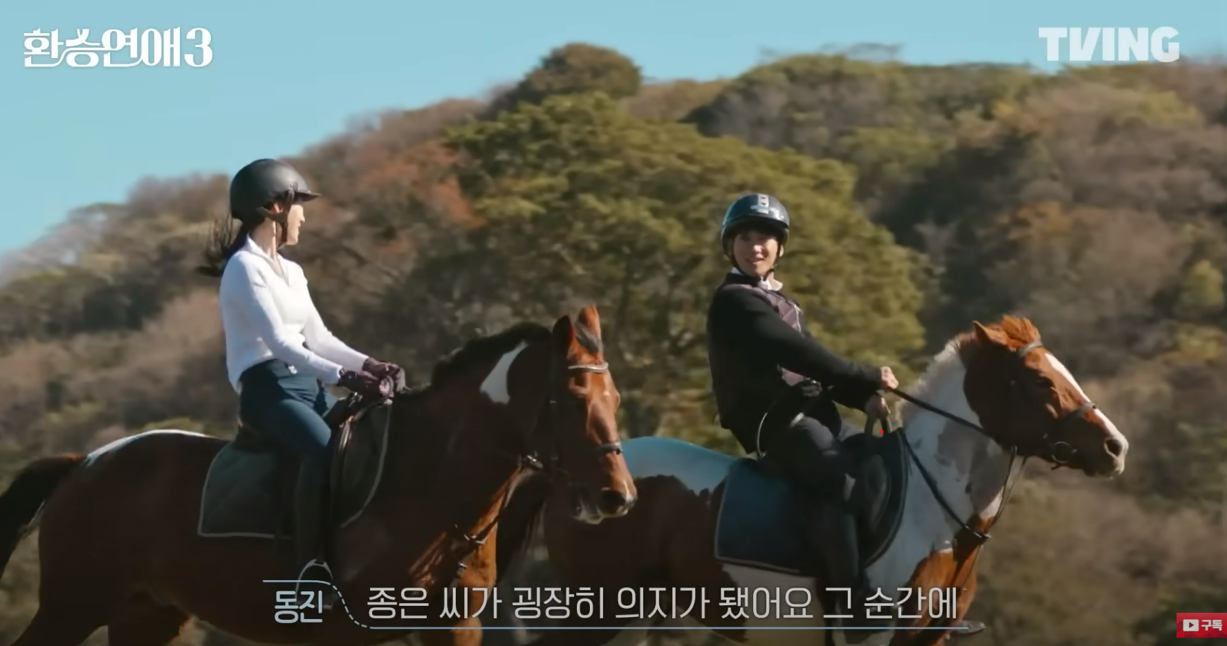 승마데이트를 즐기는 이종은과 서동진의 모습이 담겼습니다. 서동진은 승마경험이 있는 이종은을 두고 "그 순간에 굉장히 의자가 됐다. 색달랐다"라고 말했습니다.