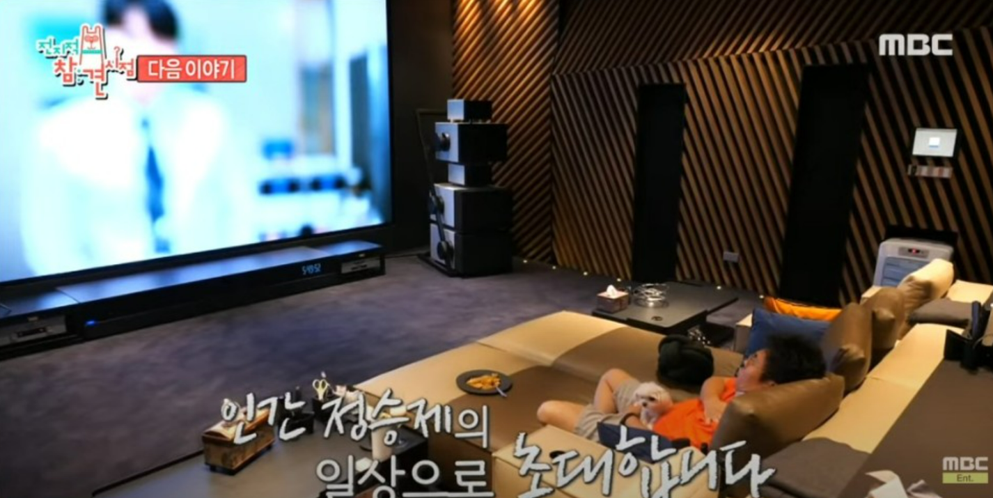 또한, 업소용 카트를 끌고 집 안 엘리베이터를 타고 지하로 내려가 영화관에서의 시간을 만끽해 놀라움을 선사했습니다.