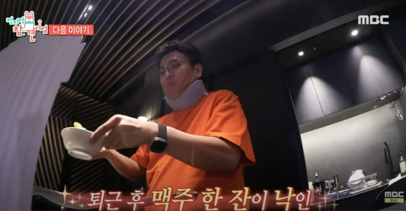 이어 정승제는 스탭들과 함께 참치회 맛집에서 회식을 하며 일상적인 모습을 보여주었습니다.