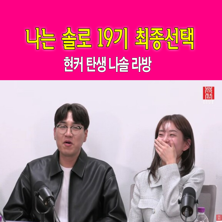 나는 솔로 19기 145회 최종선택 때에는 커플매치가 안되었는데, 방송이 끝나고 난 이후 현커가 탄생했다고 합니다. 나솔 이후 라방이 어제 공개되었는데요, 상철과 옥순의 현커 탄생!! 함께 보시겠습니다.